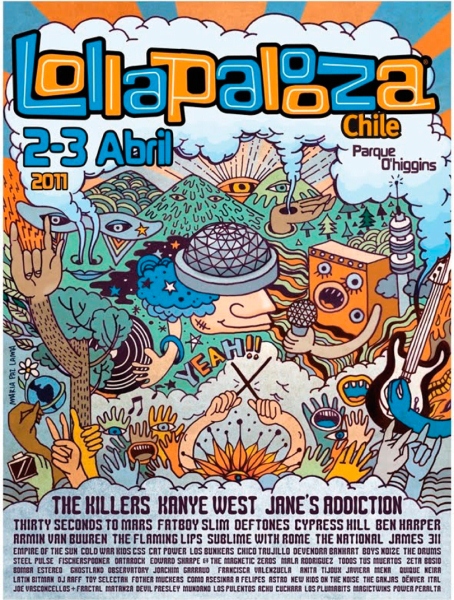 Porque no todo es rock, bueno, sí, todo es rock, pero también arte y expresiones culturales y el festival Lollapalooza sabe mucho de eso, es por eso que hemos querido hacer una recopilación de los afiches oficiales que nos a brindado el festival que se realiza desde el año 2011 en el Parque O´higgins de Santiago.
