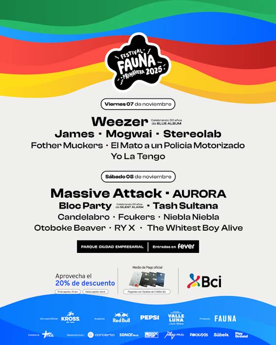 Fauna Primavera contará con grandes hitos tal como Massive Attack , quienes realizarán una nueva presentación en vivo que marcará el salto más transgresor en la colaboración entre 3D x United Visual Artists desde 2003. Por su parte Weezer celebrará los 30 años de su aplaudido Blue Album, placa homónima lanzada en mayo de 1994.