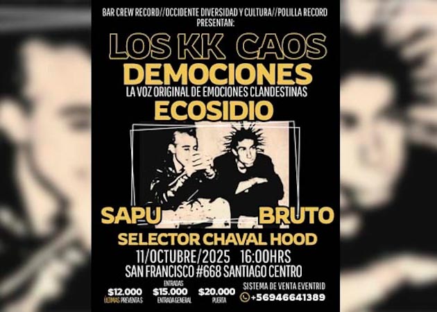 Clásicos del Punk Chileno: Los KK y Caos se presentarán este 11 de Octubre